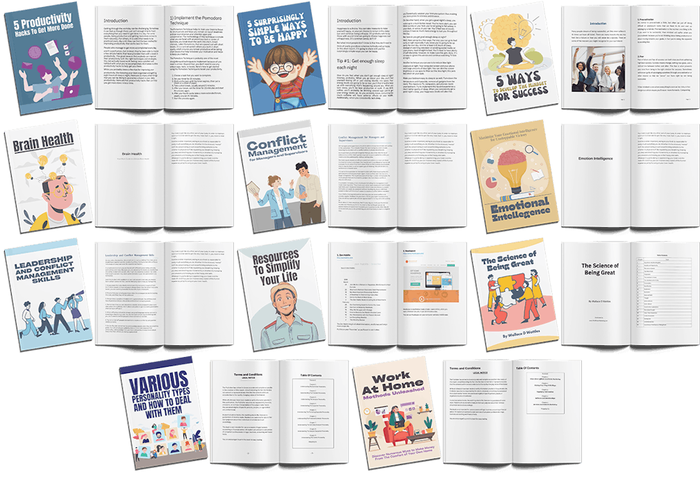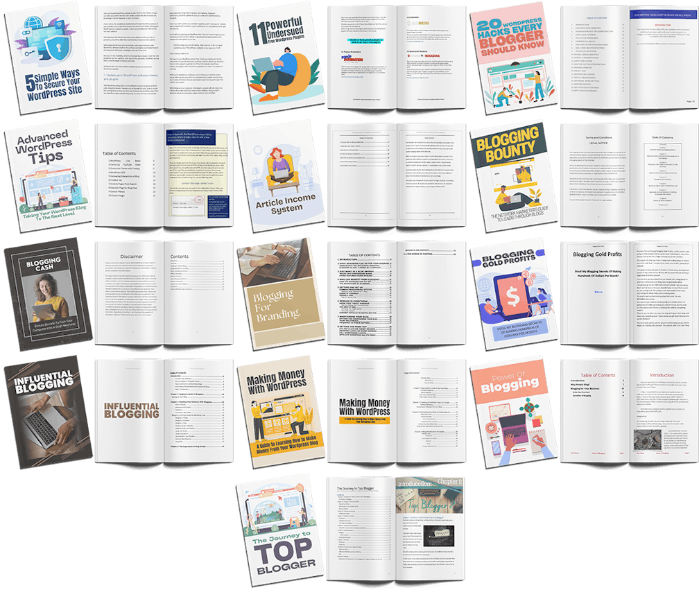Everything already mentioned and displayed in this Sales Page We selling Professional eBooks ready to sell and keep 100% profit under your name.